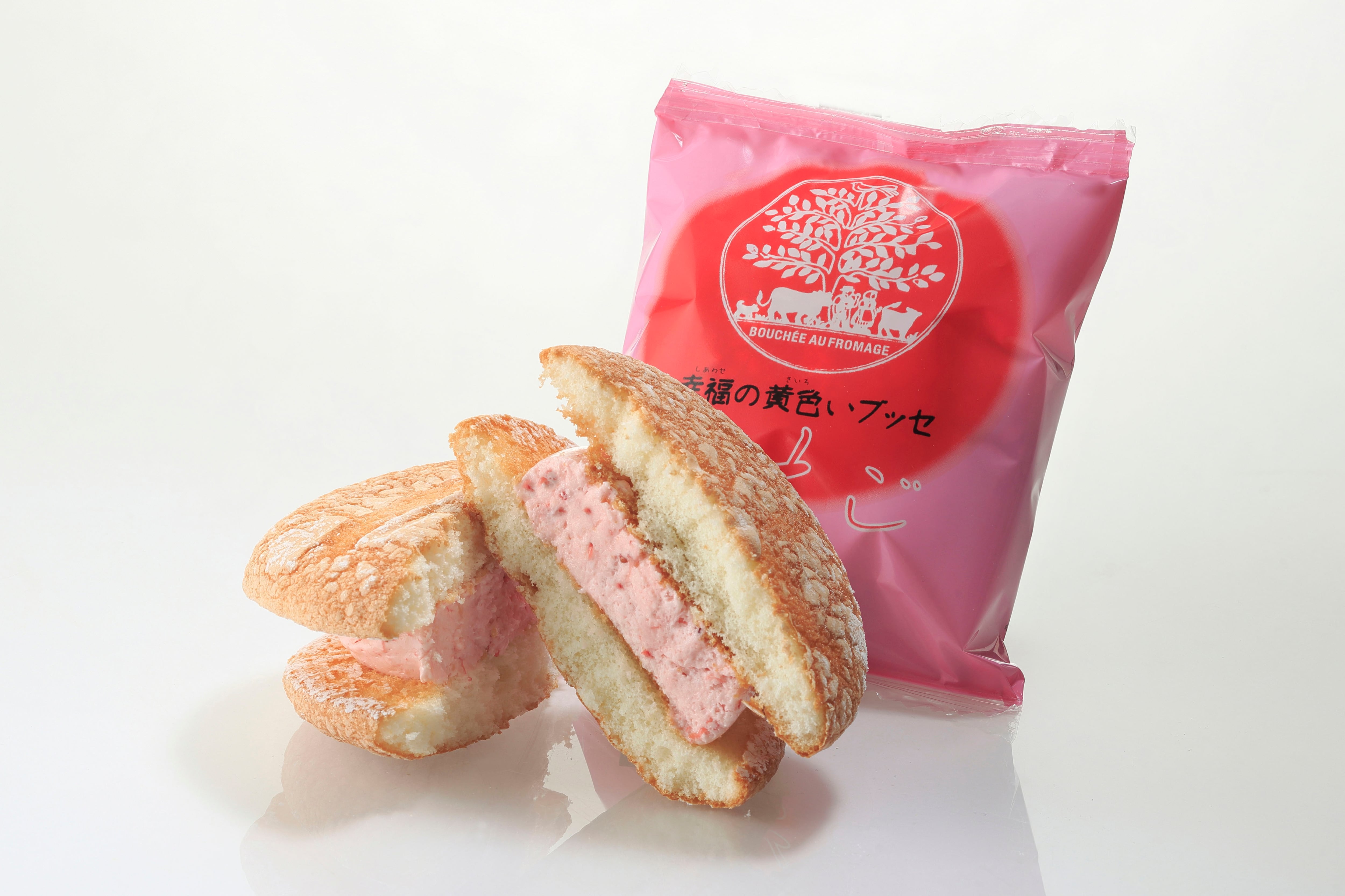 (いちごブッセ)卵、砂糖、小麦粉、バター、苺、ショートニング、砂糖結合水飴、植物性油脂、小麦澱粉、ブドウ糖、フランボワーズピューレ、異性化液糖、食塩、コーンスターチ/ソルビトール、乳化剤、膨張剤、香料、クエン酸、酸化防止剤(V.E)、カロテン色素(一部に卵・小麦・乳成分・大豆を含む)