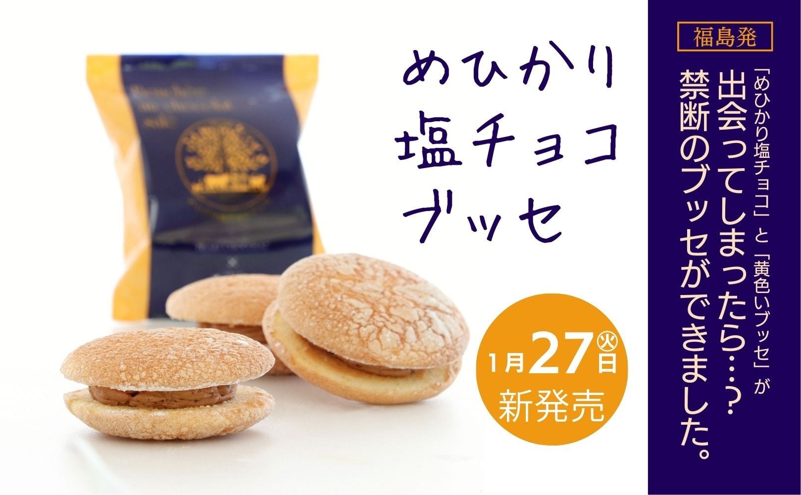 浜通りの海の恵みを感じさせる「塩チョコ」と、中通りのやさしい「幸福の黄色いブッセ」。